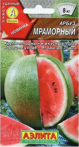 Крупноплодный сорт арбуза для выращивания в теплицах средней полосы и для открытого грунта южных регионов. Новинка выделяется среди конкурентов привлекательным узором коры, гармоничным вкусом мякоти, толерантностью к ряду заболеваний культуры. Растение плетистое, с длин ной главной плетью. Первый урожай созревает в средние сроки, через 75-90 дней после всходов. Масса плодов 7-8 кг, при хорошей агротехнике могут вырастать до 15 кг. Мякоть насыщенно-розовая, средней плотности, сочная, нежная, тающая. Продукция сохраняет отличные вкусовые и товарные свойства около 35 дней после уборки.
