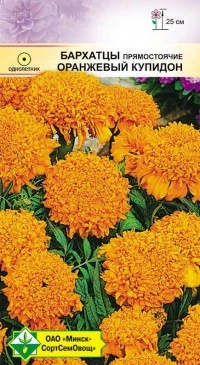 Эффектное однолетнее растение высотой около 20 см. Соцветия крупные, в диаметре 8-10 см, махровые, ярко-оранжевой окраски. Цветут обильно с июля до октября. Прекрасны для оформления клумб, бордюров, рабаток, балконов. Семена высевают на рассаду в конце марта - апреле или прямо в открытый грунт в мае. Рассаду высаживают в грунт в мае, когда минует угроза заморозков. Размещают на солнечном месте или в полутени.