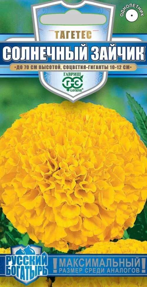 Однолетнее растение семейства Сложноцветные. Стебли прямостоячие, 50-70 см высотой, сильно ветвистые от основания, боковые побеги отклоненные. Соцветия — корзинки 10-12 см в диаметре. В открытый грунт можно высевать в конце мая — начале июня. Всходы появляются на 5-10 день. Почву желательно накрыть нетканым материалом (акрил, лутрасил). В этом случае сеять можно на неделю-полторы раньше обычных сроков и тем самым ускорить цветение. На рассаду сеют в начале апреля. Цветение начнется в июне. Бархатцы, высаженные рядом с огородными культурами уменьшают их поражение грибными заболеваниями, особенно фузариозом, защищают от некоторых видов нематод. Бархатцы используют во всех видах цветников. Они хорошо растут в горшках, вазонах, балконных ящиках, в сочетании с примулами и цинерариями. Осенью цветущие растения можно перенести в комнату, где они прекрасно растут в течение всей зимы, а весной, высаженные в открытый грунт, образуют большой цветущий куст.