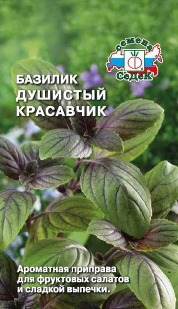 Среднеспелый сорт. Очень нарядное растение, высотой 30-40 см. Листья оливково-зеленые с пурпурными прожилками. Соцветия колосовидные розовые. Аромат с легкими оттенками корицы и клевера. Масса одного растения 65-80 г. Тепло-, свето- и влаголюбив. Предпочитает плодородные, хорошо дренированные удобренные почвы. Ценность сорта: обладает способностью к быстрому повторному отрастанию листьев после срезки, в фазу бутонизации содержит максимальное количество эфирных масел, витаминов и микроэлементов. Тонизирует, поднимает настроение, снимает усталость и депрессию. Вкусная и ароматная приправа для фруктовых салатов и сладкой выпечки. Используется в свежем, сушеном, замороженном виде.