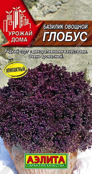 Великолепный сорт для выращивания в домашних условиях. Наряду с красивым внешним видом, обладает замечательным вкусом и неповторимым ароматом. Растения компактные, без всякой прищипки образуют плотные темно-пурпурные шарики высотой и шириной около 30 см. Всего несколько маленьких листочков дополнят, преобразят и украсят как горячие, так и холодные блюда. Прекрасно подходят для сушки и ароматизации масла. Можно выращивать в открытом грунте и теплицах.