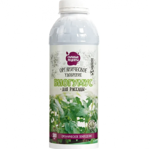 Биогумус «Садовые рецепты» для рассады 0,5 л — быстродействующее органическое удобрение, увеличивающее плодородие почв. Имеет гелеобразную консистенцию, поставляется в пластиковых бутылках объемом 500 мл.
