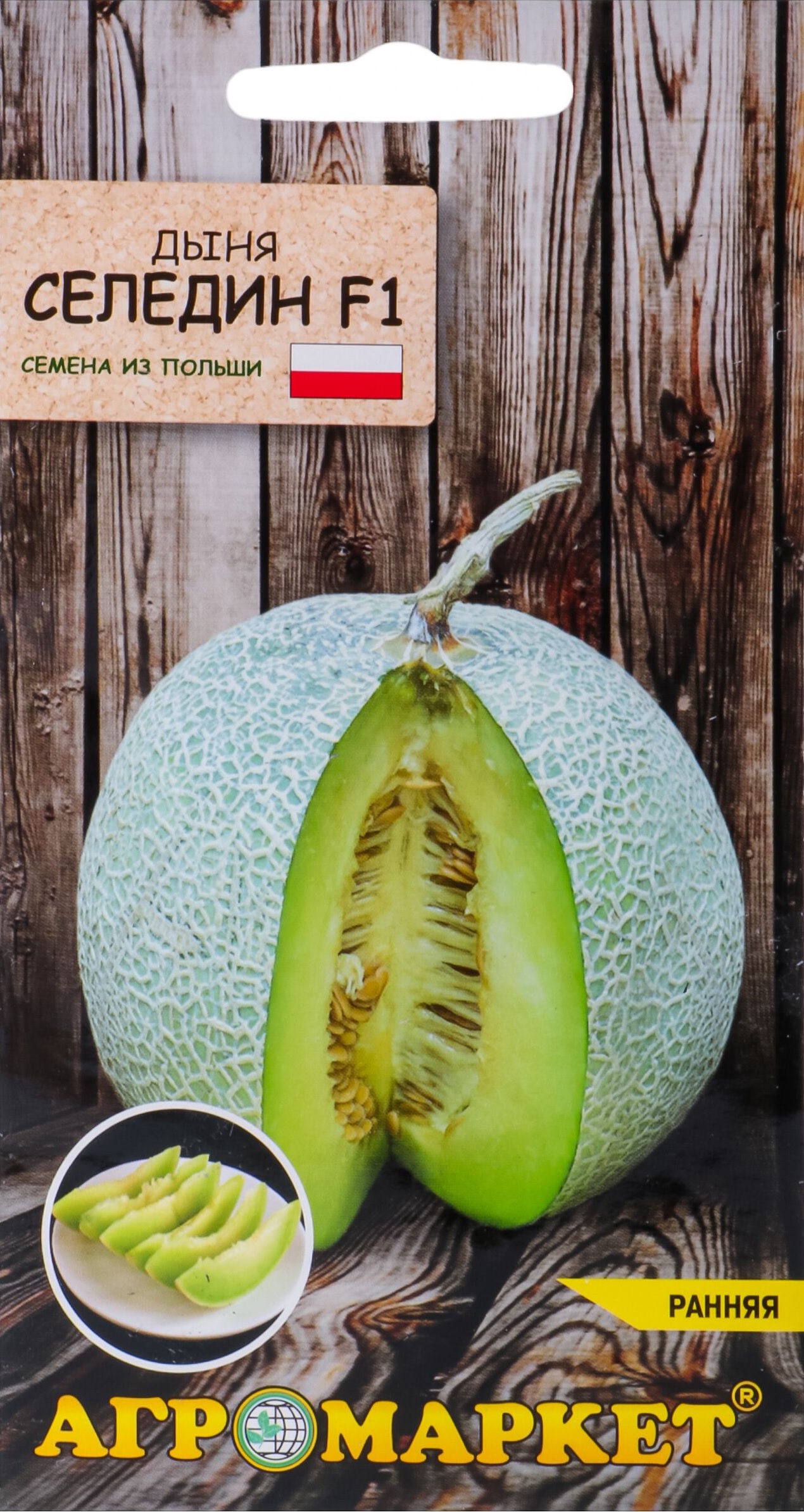 Раннеспелый гибрид. Растение плетистое, образует 2-4 округло-овальных плода с зеленовато-желтой коркой. Мякоть сладкая и очень сочная, зеленоватого цвета. Гибрид характеризуется устойчивостью к ложной мучнистой росе. Подходит для выращивания в условиях открытого и защищенного грунта. Рекомендуется для потребления в свежем виде, а также для переработки (варенья, коктейли и мн.др.).