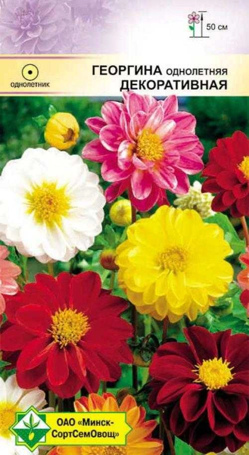 Однолетнее роскошное растение высотой около 50 см. Обильно цветет с июля до заморозков. Соцветия разнообразных окрасок, в диаметре 7-10 см, махровые. Для цветников, балконных ящиков, великолепно смотрится в букетах. Семена на рассаду высевают в начале апреля (в мае возможен посев непосредственно в грунт). Рассаду высаживают после окончания заморозков. Осенью клубни можно выкопать и сохранить до весны.