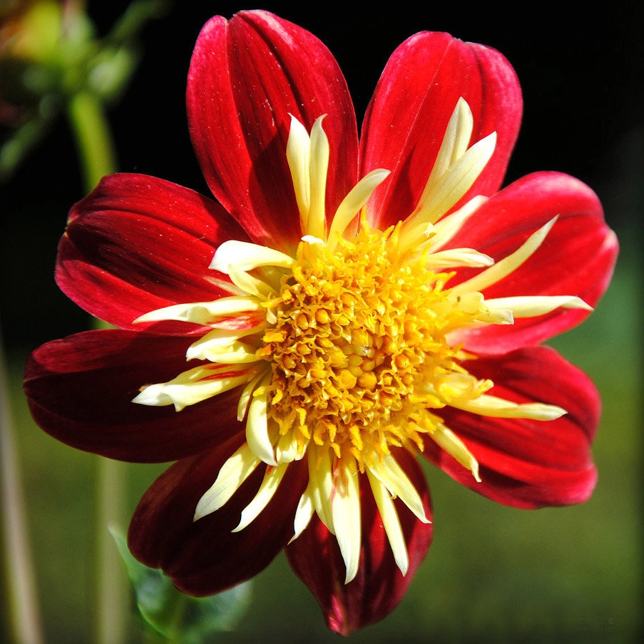 Цветки этого сорта представляют собой незабываемое зрелище: внешний и внутренний круг лепестков настолько контрастные, что создают эффект цветка в цветке. Внешний круг - вишнево-красный, состоит из восьми почти круглых широких лепестков. Внутренний - из мелких, асимметричных трубчатых, с очень светлой, кремовой окраской. Сердцевинка цветка крупная, ярко выделяющаяся. Благодаря такой необычной структуре, очень изящной удлиненной зелени и удивительно воздушной текстуре кроны La Gioconda кажется экзотическим видением, а цветки выглядят ослепительно, напоминая яркое солнце на темно-красном фоне. Высота до 90 см.