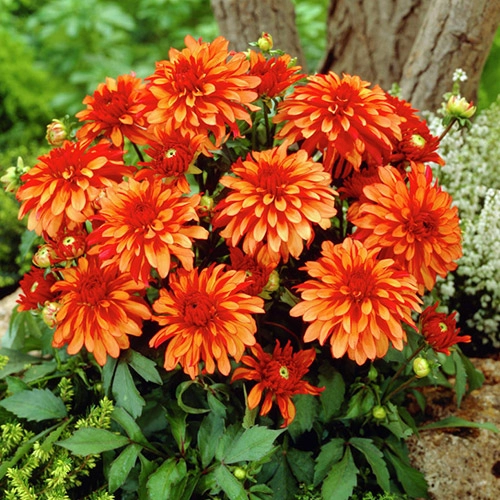 Декоративная георгина Арт Деко в отличие от обыкновенных высоких сортов, цветет с июня до морозов, выглядит ярко и нарядно весь сезон, а также не требует подвязки, так как растет компактным округлым кустом. Высота растения около 40 см. Размер соцветий около 5-10 см. Цветки сорта Арт Деко очень яркие и необычные для георгины: у них желто-оранжевые, с оттенками розового лепестки, которые словно светятся изнутри.