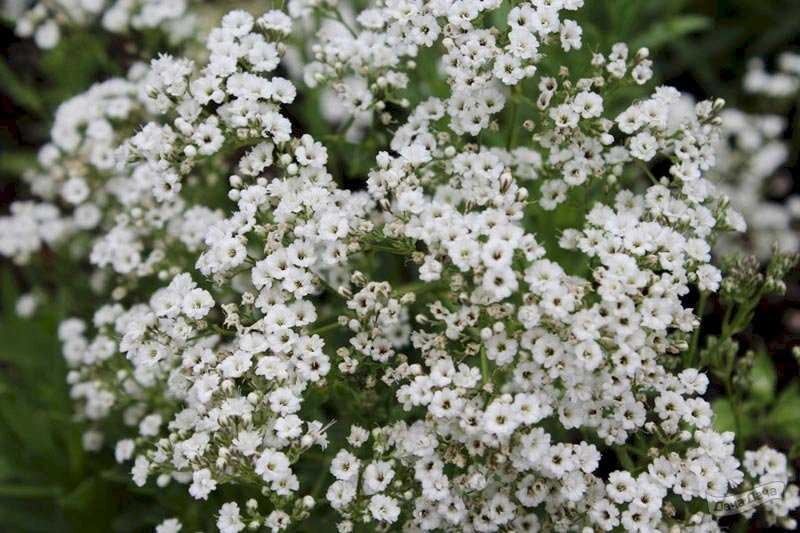Гипсофила Вайт – эффектный куст сферической формы, ажурность которому придают сильноветвистые (особенно в верхней трети) стебли и мелкие белоснежные цветки (до 0,6 см), собранные в соцветия-метелки. Зацветает растение в конце июня – начале VIIIа и цветет около полутора месяцев. Узкие мелкие серовато-зеленые листья опушены.