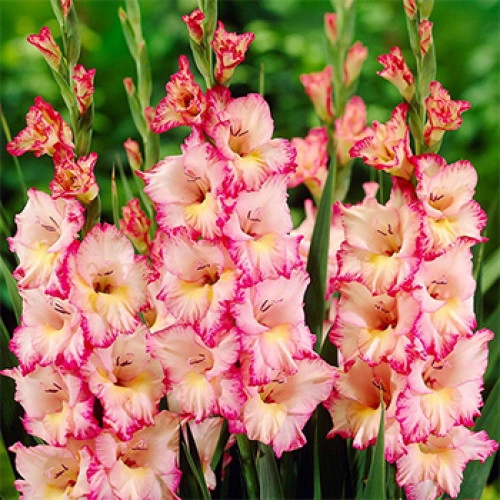 Гладиолус Priscilla (Присцилла) – чудо современной селекции, яркий крупноцветковый сорт неповторимой окраски. Цветки с выражено жатым краем лепестков – нежно-розовые. Контрастная кайма – малиново-лиловая, а серединка цветка – кремово-оранжевая. Окраска – уникально декоративная, даже для современных гладиолусов, которые отличают еще стойкостью и неприхотливостью. Вырастить сорт Priscilla может даже новичок в цветоводстве.