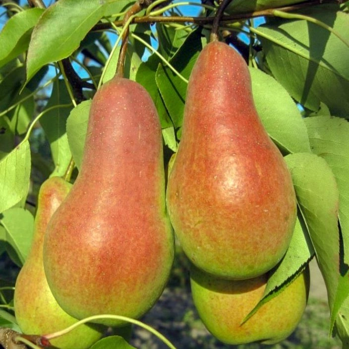 Самая лучшая и популярная груша из зимних груш. У этого сорта нет недостатков. Дерево среднее по размерам имеет широко-пирамидальную крону, усыпанную крупными нарядными грушами превосходного качества. Груши совершенно не осыпаются и до ноября висят на дереве. В ноябре это выглядит просто сказочно. Плоды очень высокой дегустационной оценки, хрустящие, сладкие, мелкозернистые и очень сочные. Эта груша - скороплодная и очень урожайная, плодоносит без пауз, регулярно. Отмечены также отличная зимостойкость, высочайшая устойчивость к болезням плодов и коры.