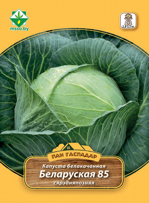 Среднепоздний урожайный сорт белорусской селекции. Период от всходов до начала уборки 140-150 дней. Кочаны округлые и округло-плоские, зеленые, на разрезе белые, в середине светло-кремовые, крупные, массой 2,8-3,5 кг, плотные, устойчивы к растрескиванию. Вкусовые качества очень высокие. Один из лучших для квашения, также потребляется в свежем виде. Хранится до марта.