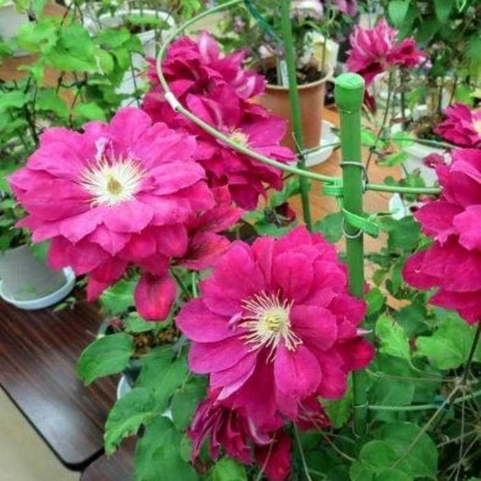 Клематис Акафуджи – сорт японской селекции. Цветки диаметром 8-12 см, в основном полумахровые, пышные. Лепестки от красных до красно-пурпурных, очень красиво сочетаются с длинными жёлтыми пыльниками. Окраска лепестков не тускнеет на солнце. Цветение в мае-июне на прошлогодних побегах и в августе на побегах текущего года. Высота 150 см. Хорошо подходит для выращивания в контейнерах на балконах и террасах. Зона 5 (до -23ºС). Особенность этого цвета заключается в том, что он достаточно устойчив к солнцу и не выцветает на свету.