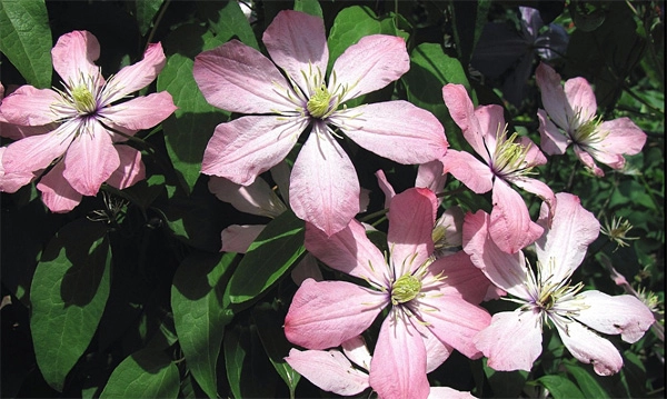 Интересный русский сорт c большими, светло-розовыми цветками. Неприхотливый, может расти в любом саду. Хорош для посадки у ограждений, беседок, решёток и других садовых опор или в больших контейнерах на балконах и террасах. Лиана длиной 2-2,5 метра. Цветет с мая по август, на побегах текущего года.Местоположение: солнце, полутень.