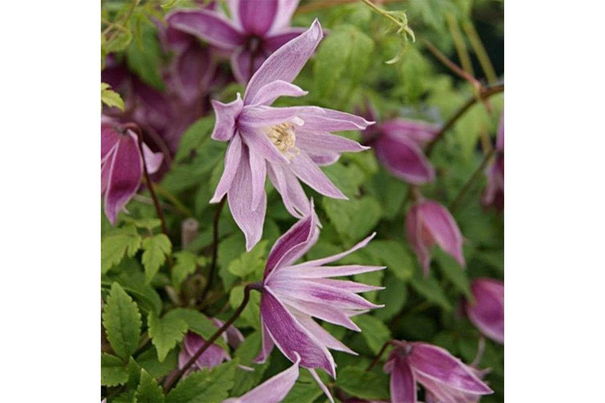Клематис ботанический сорт Маркхемс Пинк (Markham's Pink) - один из ранних и обильноцветущих сортов с красивыми полумахровыми пурпурно-розовыми цветками. Цветёт с апреля по июнь. Летом и осенью имеет декоративные соплодия. Диаметр цветка 5-8 см. Высота 2-3 м. Очень устойчив и малотребователен к условиям выращивания. Цветёт на прошлогодних побегах, поэтому не требует обрезки, если не мешает соседним растениям.
