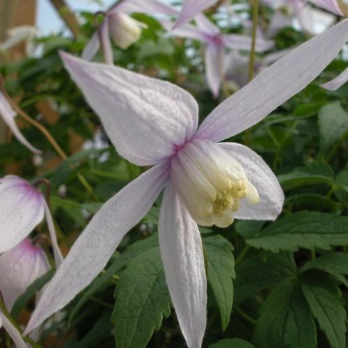 Клематис Вилли - княжик, один из ранне- и обильноцветущих сортов голландской селекции, с прекрасными колокольчиковидными, светло-розово-лиловыми цветками длиной 4-5 см, диаметром 7-10 см. Лепестки с тёмно-розовым основанием и светлыми краями. Цветки хоть и мелкие, но очень декоративные. Цветет обильно в конце апреля и в мае. Летом и осенью украшен декоративными соплодиями. Высота 200-300 см.