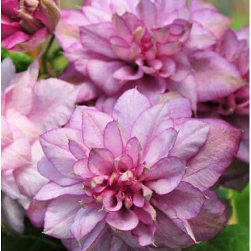 Сорт Инносент Гланс выпускает крупные махровые цветки размером 14 — 15 см. Лепестки растения светло-розовые, на заостренных кончиках – сиреневой окраски.