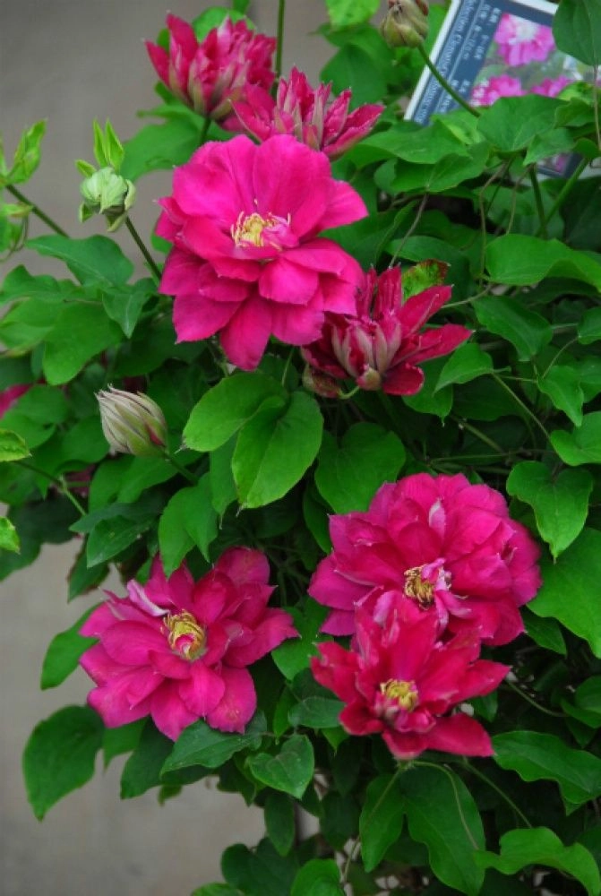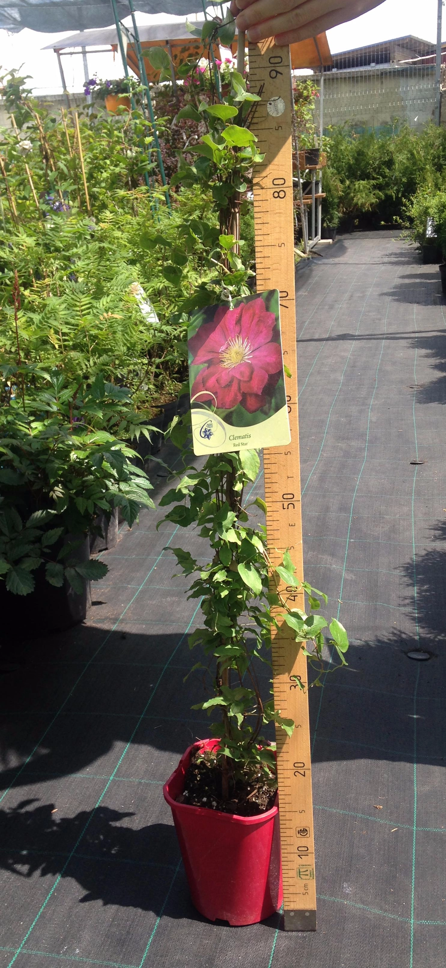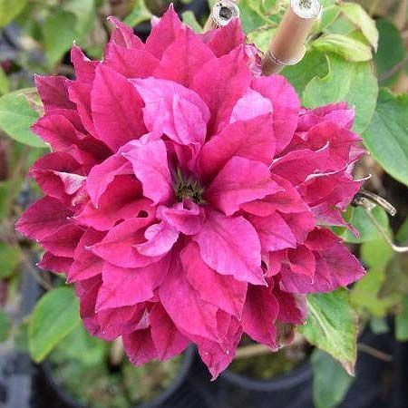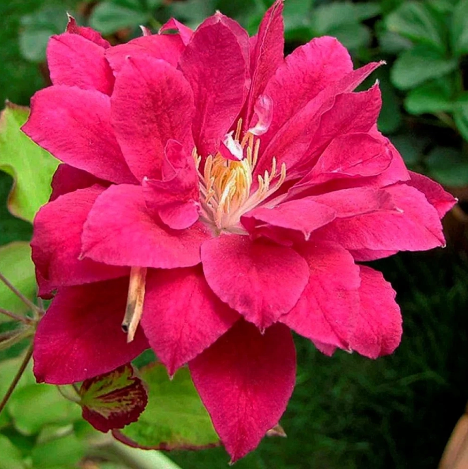 Японский сорт с красными махровыми и полумахровыми цветками диаметром 10-14 см. Чашелистики неправильной формы c волнистыми краями, остро заканчивающиеся, светло-красные с розовой полоской посередине. Тычинки с пурпурными пыльниками на кремово-желтых нитях. Цветет во второй половине мая - июне и вновь, но менее обильно, в августе - сентябре. Достигает высоты 1,5-2 м. За опоры цепляется листовыми черешками. Используется для выращивания у оград, беседок, решеток, колышков и других садовых опор. Может карабкаться по натуральным опорам, например, лиственным либо хвойным кустарникам, а также полукустарникам, не требующим сильной обрезки. Любит солнечные места.