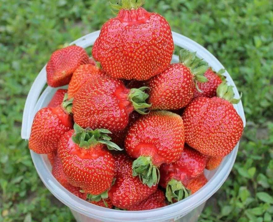 Ягоды сорта клубники Чамора Таруси очень ароматные и напоминают лесную землянику. Они имеют красивый насыщенный красный цвет и их средний вес составляет 100 г. Даже на обедненных почвах ягода достигает 50 г, а на хорошо удобренных грядах один куст может дать урожай до трех кг. Красивые крупные кусты с большим обилием ягод весьма привлекательны.