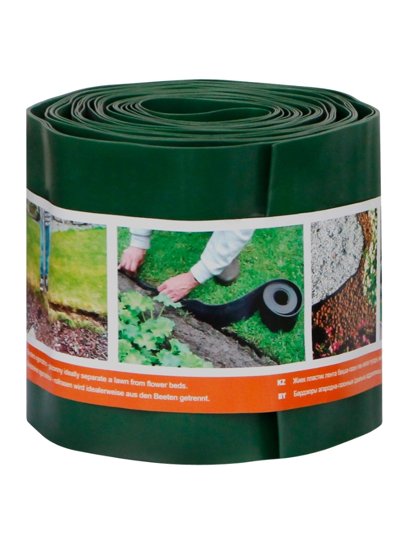 Бордюрная лента очень проста в применении. Она легко режется ножницами, сгибается под любым углом. Лента вкапывается вертикально в землю таким образом, чтобы край бордюра немного выступал над поверхностью почвы.