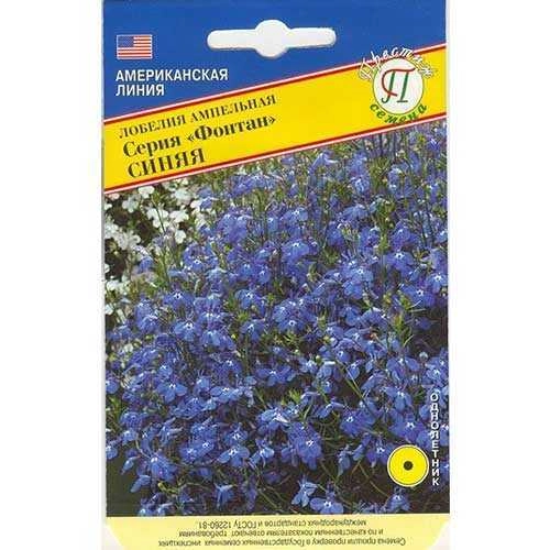 Лобелия Фонтан синяя дает бутоны в начале лета и цветет до сентября включительно. Используется при оформлении балконов, лоджий и открытых террас как ампельное растение со свисающими побегами длиной 20−25 см. Многочисленные цветы диаметром 1−2 см имеют ярко-синий окрас, подчеркнутый белым колечком сердцевины. Семена проращивают в марте-апреле под пленкой или стеклом. Равномерно распределяют по субстрату, не заглубляя, и обеспечивают температуру 22−24°. До появления всходов (5−7 день) влажность почвы поддерживают опрыскиванием. Через 3−4 недели саженцы пикируют и в конце мая переносят на солнечный участок.