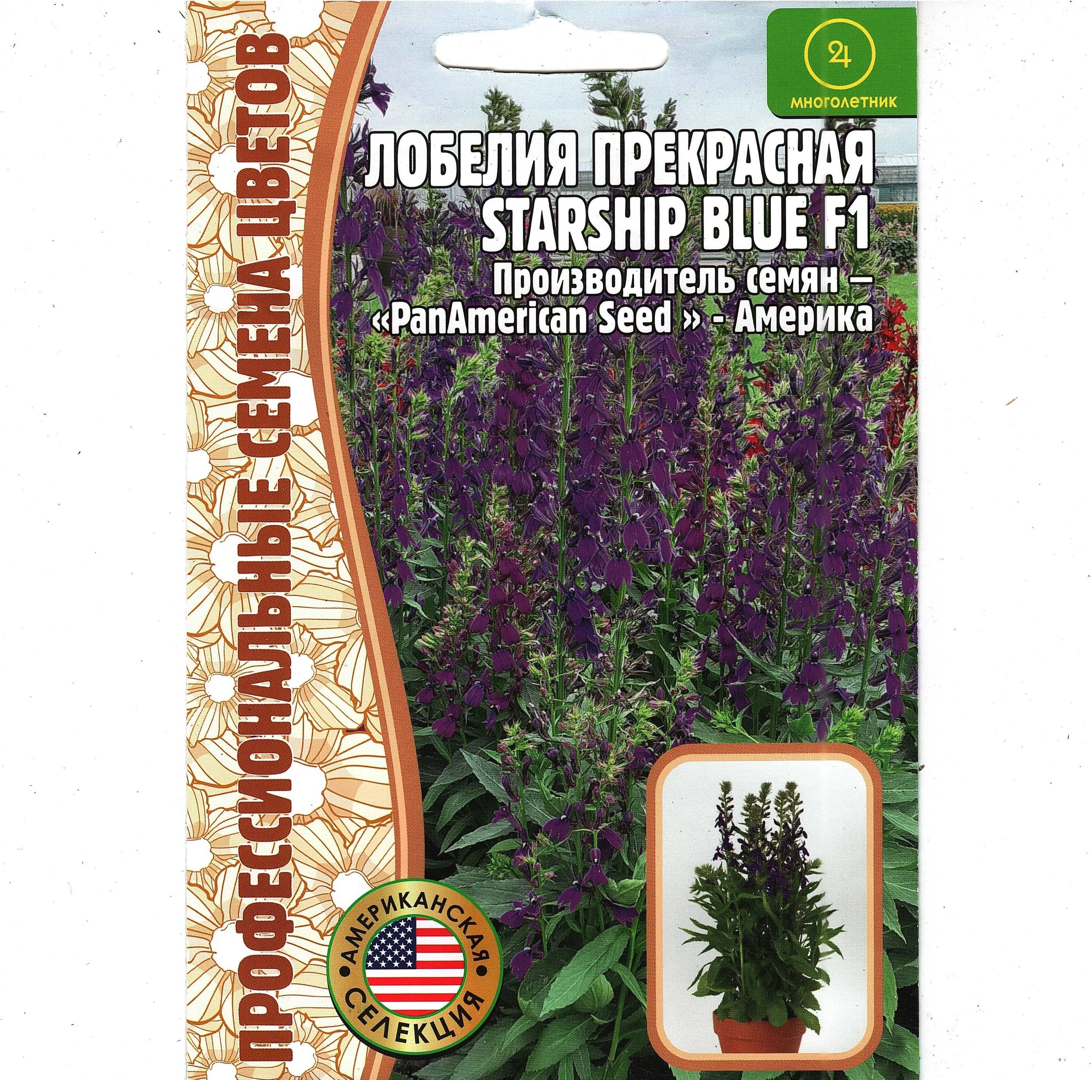 Лобелия прекрасная Starship Blue F1. Оригинальный многолетник с декоративной листвой, формирующий колос с многочисленными цветками насыщенного голубого цвета. Высота куста 50-60 см, ширина 15-20 см. Применяется как декоративно-лиственное и красивоцветущее растение в цветниках, рабатках и группах, в бордюрах и ковровых композициях. Также эффектно смотрится горшках и крупных вазонах, прекрасно подходит как комнатное растение.