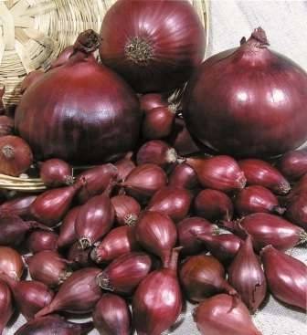 Луковица округлая, массой 50–90 г. Сухие чешуи - красного цвета, сочные – темно-красного.