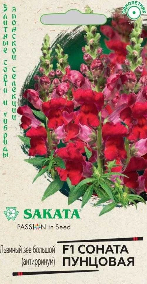 Интересные цветы добавляют уюта, прелести и моментально оживляют даже самый унылый и невзрачный участок в саду. Львиный зев — стильная культура, имеющая невероятно изысканный внешний вид, расцветку и форму. Гибрид F1 Соната пунцовая раскрасит сочными, красками любую, даже самую скучную территорию, создавая нереальную красоту с конца июня до поздних заморозков и распространяя вокруг восхитительный аромат. На пирамидальных, хорошо ветвящихся кустиках располагаются опушенные листья ланцетовидной формы и большое количество пышных соцветий. Антирринум холодостоек, светолюбив, к почвам нетребователен, в засушливый период нуждается в поливе. Выращивают рассадным способом. Для получения дружных всходов семена необходимо стратифицировать при температуре +10°С. Посев проводят с начала марта до середины апреля, поверхностно, не заделывая, в ящики с субстратом и ставят на свет. Всходы появляются через 8-12 дней. Рассаду высаживают во второй половине мая с расстоянием между растениями 20 см. Очаровательно будет смотреться не только в больших контейнерах, но и в маленьких горшочках.