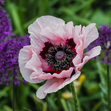 Это многолетнее растение с прочными, щетинистыми стеблями высотой 80–100 см. Листья прикорневые, крупные, перисто-рассеченные. Цветки одиночные, диаметром до 18 см. Ценится он за раннее цветение (середина мая – середина июня), мощный куст, под которым практически не растут сорняки, крупность и яркость цветков. Помимо традиционной ярко-алой окраски лепестков (с угольно-черной серединкой), получено множество сортов умопомрачительного цвета.