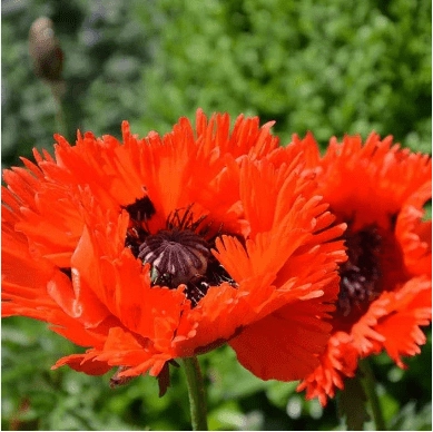 Мак Раффлд Туркенлуиз – непревзойденно красивый, обильноцветущий, морозостойкий сорт высотой до метра. Цветы очень крупные (около 18 см), ярко-красные с черным центром, бахромчатые. Хорош в срезке, используется в миксбордерах на заднем плане.