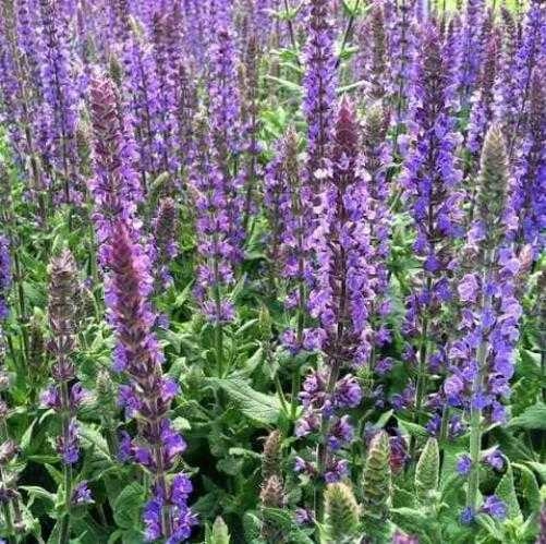Листья узкоовальные, темно-зеленые, слегка шероховатые. Соцветия представляют из себя узкие кисти фиолетово-голубых цветов. Цветет очень обильно и продолжительно. При своевременном удалении отцветших соцветий возможно повторное цветение. Время цветения: июль-август. Высота растения 40-50 см