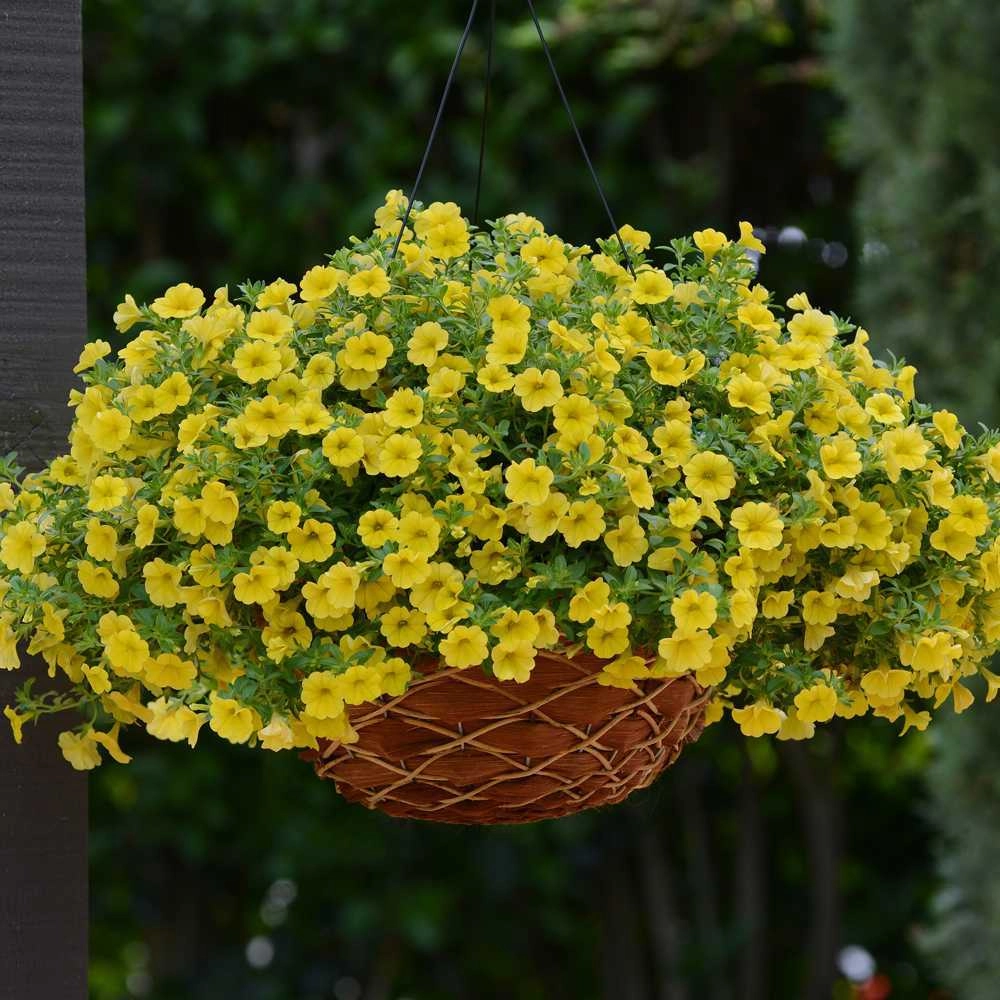 Цветки калибрахоа – мелкие от 2,5 до 3 см в диаметре, имеют форму колокольчика. Множество ярких колокольчиков, усеянных на зеленых побегах, создают впечатление пышного цветущего шара. Наиболее выигрышно цветок выглядит в подвесном кашпо или в другой подвесной конструкции.