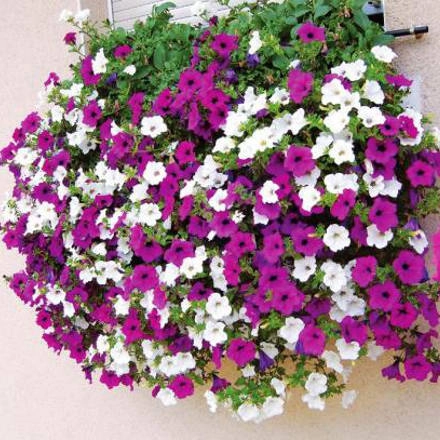 Сурфиния – гибрид петунии, дающий побеги длиной до 2 м, сплошь усыпанные многочисленными крупными цветками различной окраски, с темным или светлым зевом.