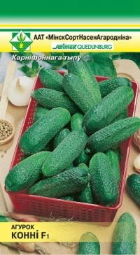 Ранний гибрид корнишенного типа. Партенокарпический (самоопыляемый). Плоды цилиндрической формы, короткие, мелкобугорчатые, ярко-зеленые, белошипые, долго не желтеют, имеют хрустящую консистенцию. Генетически не содержит горечи. Вкусовые качества отличные. Универсального назначения. Для открытого грунта и пленочных теплиц.