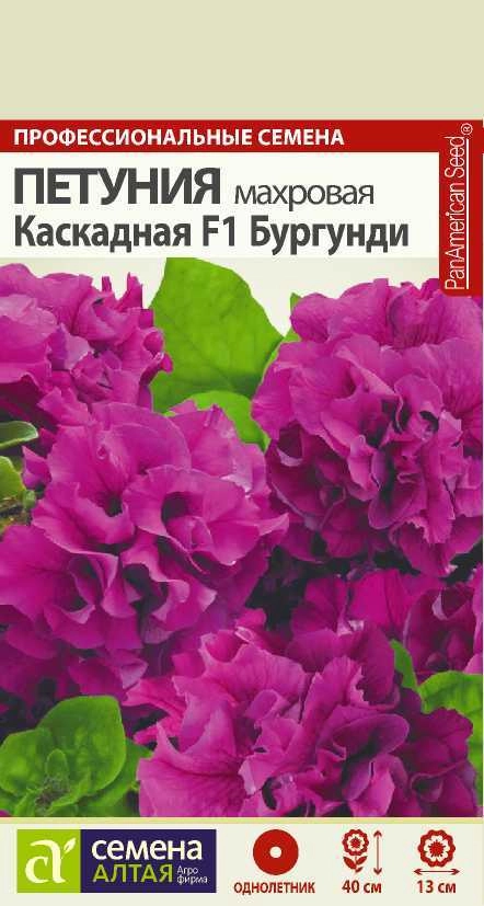 Восхитительные крупноцветковые петунии с интенсивным ростом, образующие ниспадающие побеги, покрытые во время цветения шлейфом цветков темно-вишневой (бордовой) окраски. Цветение пышное и длительное. Чудесно смотрятся в балконных ящиках, цветниках, в групповых посадках на газоне, великолепное украшение крыльца, фасадов зданий и окон. Семена на рассаду высевают в конце февраля - марте не заделывая землей, а просто накрывая ящики стеклом. Пока всходы мелкие их лучше не поливать, а опрыскивать. Пикировка в фазе 1-2 настоящих листочков. Высадка в грунт закаленной рассады в конце мая - начале июня, когда минует угроза заморозков. Спокойно переносят пересадку во взрослом состоянии. Возможно сохранение растений зимой в освещенном помещении при температуре около 12°С с предварительной обрезкой побегов.
