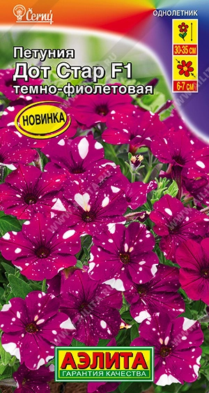 Впервые на рынке из семян! Эксклюзивная новинка чешской селекции от компании Сernу – одна из самых популярных расцветок. Неповторимая серия гибридов «Дот Стар» представлена многоцветковой петунией с потрясающим, контрастным рисунком лепестков, повторяющим звездное небо. Каждый цветок индивидуален: форма и количество белых вкраплений меняется в зависимости от погодных условий. Растения высотой 30-35 см. Активно растут и развиваются, формируя симпатичные, плотные кустики с большим количеством цветков 6-7 см. Яркая петуния украсит любую клумбу, вазон, подвесное кашпо, став изюминкой вашего сада!