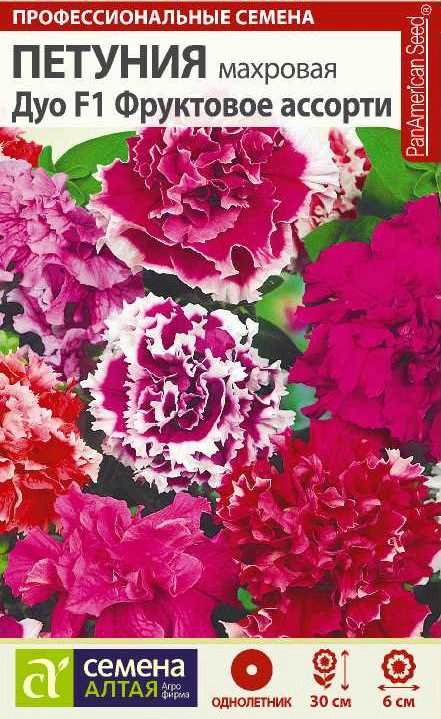 Многоцветковая петуния с очаровательным цветением! Это чудесное ветвящееся растение высотой 20-30 см, напоминающее шарики фруктового мороженого. Крупные махровые цветки разнообразной окраски: однотонной, двухцветной и с жилкованием, с гофрированными лепестками, устойчивы к похолоданиям и непогоде. Цветение пышное и длительное. Чудесно смотрятся в балконных ящиках, цветниках, в групповых посадках на газоне. Семена на рассаду высевают в конце февраля - марте не заделывая землей, а просто накрывая ящики стеклом. Пока всходы мелкие их лучше не поливать, а опрыскивать. Пикировка в фазе 1-2 настоящих листочков. Высадка в грунт закаленной рассады в конце мая - начале июня, когда минует угроза заморозков. Спокойно переносят пересадку во взрослом состоянии. Возможно сохранение растений зимой в освещенном помещении при температуре около 12°С с предварительной обрезкой побегов.