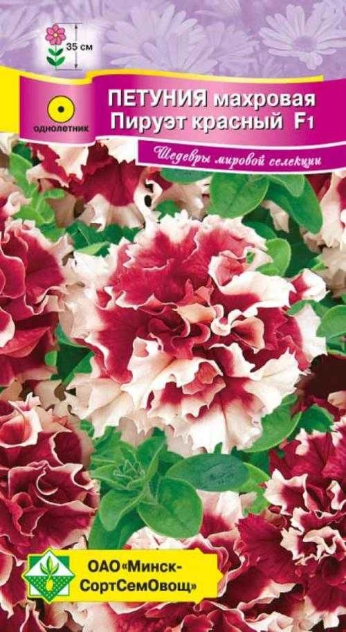 Однолетнее продолжительно и ярко цветущее растение высотой около 35 см. Цветки густомахровые, двухцветные, в диаметре 10-12 см. Необычная белая окантовка красных цветков и сильная гофрировка лепестков делают эти петунии непревзойденными для оформления балконов, лоджий, клумб. Посев на рассаду производят в конце марта - начале апреля. Семена не присыпают, а слегка вдавливают в рыхлую влажную почву, посадочную ёмкость накрывают стеклом или плёнкой. Рассаду высаживают с середины мая.