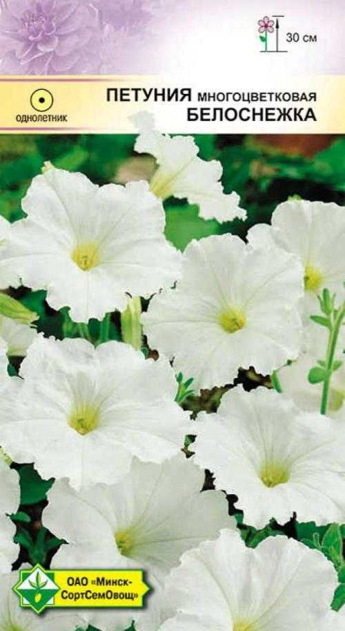 Обильно и продолжительно цветущее однолетнее растение высотой около 30 см с массой эффектных цветков. Цветки белоснежные, в диаметре 6-7 см. Прекрасно смотрится на клумбах, в оконных вазах и подвесных корзинах. Посев на рассаду производят в конце марта - начале апреля. Семена не присыпают, а слегка вдавливают в рыхлую влажную почву, посадочную ёмкость накрывают. В открытый грунт рассаду высаживают с середины мая.