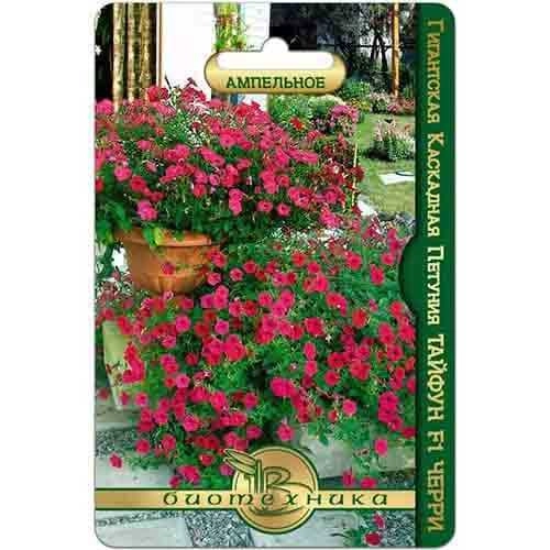 Растение каскадного типа, с множеством прочных стеблей, длина которых достигает полутора метров. Данный гибрид отличается средними цветками вишнево-розового оттенка, форма которых напоминает воронку. Растение отличается мощностью, хорошо восстанавливается при повреждении. Быстро растет, образуя несколько десятков цветков на каждом кустике. Тайфун длительное – с начала лета и до заморозков.