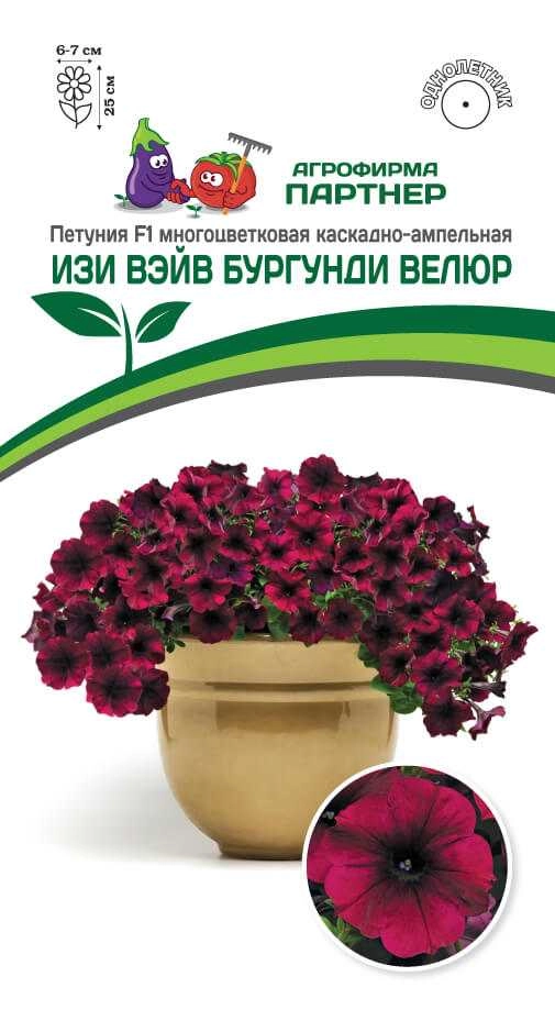 "Изи Вэйв" - петуния с улучшенной окраской и сильным цветком, невероятно устойчивым к воздействию ветра и дождя. Дословно переводится как «легкая волна». И это не удивительно, ведь главной целью было создание легкого в уходе гибрида, который бы хорошо себя проявлял в условиях короткого дня. Она сумела доказать свою исключительную выносливость противостоять любым катаклизмам погоды и великолепно чувствовать себя в условиях жары и холода. Своим появлением «Изи Вэйв» «взбудоражила» цветоводов, ландшафтных дизайнеров, профессионалов и производителей рассады. Полюбилась она за исключительную выравненность, мощь, а также яркое и неугомонное цветение. Благодаря многочисленному ветвлению, растение образует красивую крону в форме купола с плотным расположением цветков по всему кусту. При посадке в открытый грунт одно растение с легкостью закрывает площадь около 1,5 м² и образует красочный живой ковер. Очень быстро восстанавливается после дождя и ветра. Это лучший выбор для балконов, беседок, клумб и высоких вазонов с размещением на уровне глаз. Чтобы петуния полностью раскрыла свой потенциал, рекомендуем объем кашпо 15 л и более на одно растение и схему посадки в грунте – 60х60 см.