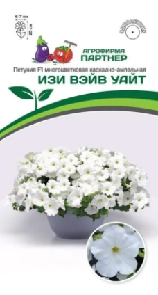 «Изи Вэйв» - петуния с улучшенной окраской и сильным цветком, невероятно устойчивым к воздействию ветра и дождя. Дословно переводится как «легкая волна». И это не удивительно, ведь главной целью было создание легкого в уходе гибрида, который бы хорошо себя проявлял в условиях короткого дня. Она сумела доказать свою исключительную выносливость противостоять любым катаклизмам погоды и великолепно чувствовать себя в условиях жары и холода. Своим появлением «Изи Вэйв» «взбудоражила» цветоводов, ландшафтных дизайнеров, профессионалов и производителей рассады. Полюбилась она за исключительную выравненность, мощь, а также яркое и неугомонное цветение. Благодаря многочисленному ветвлению, растение образует красивую крону в форме купола с плотным расположением цветков по всему кусту. При посадке в открытый грунт одно растение с легкостью закрывает площадь около 1,5 м² и образует красочный живой ковер. Очень быстро восстанавливается после дождя и ветра. Это лучший выбор для балконов, беседок, клумб и высоких вазонов с размещением на уровне глаз. Чтобы петуния полностью раскрыла свой потенциал, рекомендуем объем кашпо 15 л и более на одно растение и схему посадки в грунте – 60х60 см.