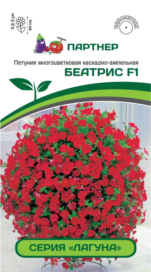 Петуния серии «ЛАГУНА» – своим появлением несомненно обогатила мировой цветочный ассортимент. Это мелкоцветковая петуния, представленная в совершенно в новом качестве! Габитус растения и диаметр цветка напоминает калибрахоа: тонкие длинные ниспадающие побеги, достигающие в длину 1 метра, стремятся вверх и в стороны и просто усыпаны цветками. Благодаря этому, середина куста никогда не бывает пустой, что часто случается с ампельными петуниями. Цветение непрерывное и чрезвычайно обильное с весны до поздней осени, благодаря наличию мужской стерильности. «ЛАГУНА» характеризуется устойчивостью как к повышенным, так и пониженным температурам. С помощью данной серии вы воплотите в жизнь множество оформительских идей, создадите яркие цветовые пятна в солнечных палисадниках, каменистых садиках, клумбах, придадите динамичности композиции в подвесном декоре, корзинах. Чтобы петуния полностью раскрыла свой потенциал, рекомендуем объем кашпо 10-15 л на одно растение и схему посадки в грунте – 60х60 см.