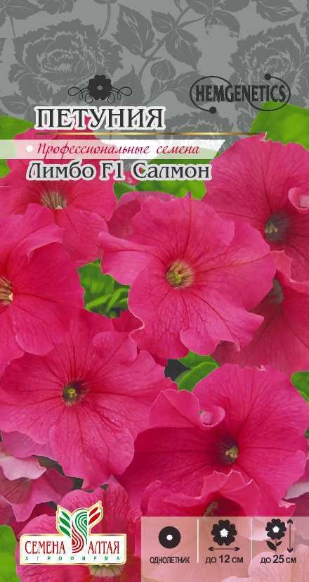 Петуния Лимбо – единственная на рынке генетически карликовая серия крупноцветковой петунии. Растение хорошо ветвится, не перерастает и не вытягивается в течение всего сезона. Не нуждается в регуляторах роста. Образует компактные кустики, покрытые крупными, до 12 см в диаметре, лососевыми цветками. Растение очень быстро восстанавливается после дождя. Цветение наступает раньше, чем у других крупноцветковых петуний. Идеальный материал для декоративного оформления балконов, фасадов зданий, городских и садовых участков. Светолюбивое и достаточно засухоустойчивое растение, не переносит переувлажнения. Предпочитает легкие плодородные, хорошо дренированные почвы. Семена дражированные, что облегчает посев. В рассаде не перерастает, имеет очень хорошее ветвление. Семена высевают в феврале-марте, не заделывая землей, а просто накрывая ящики стеклом. Пока всходы мелкие, их лучше не поливать, а опрыскивать. На открытом воздухе продолжают выращивать с конца мая. Благодарно отзывается на поливы и регулярные подкормки.