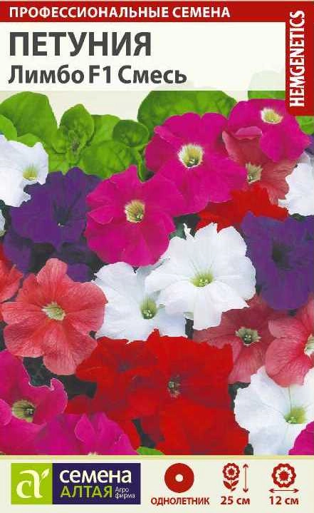 Петуния Лимбо – единственная на рынке генетически карликовая серия крупноцветковой петунии. Растение хорошо ветвится, не перерастает и не вытягивается в течение всего сезона. Не нуждается в регуляторах роста. Образует компактные кустики, покрытые крупными, до 12 см в диаметре, цветками различных цветов и оттенков. Растение очень быстро восстанавливается после дождя. Цветение наступает раньше, чем у других крупноцветковых петуний. Идеальный материал для декоративного оформления балконов, фасадов зданий, городских и садовых участков. Светолюбивое и достаточно засухоустойчивое растение, не переносит переувлажнения. Предпочитает легкие плодородные, хорошо дренированные почвы. Семена дражированные, что облегчает посев. В рассаде не перерастает, имеет очень хорошее ветвление. Семена высевают в феврале-марте, не заделывая землей, а просто накрывая ящики стеклом. Пока всходы мелкие, их лучше не поливать, а опрыскивать. На открытом воздухе продолжают выращивать с конца мая. Отзывчива к поливам и подкормкам.