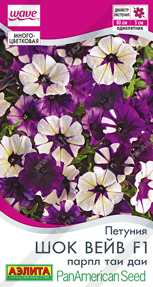 Роскошный ампельный гибрид многоцветковой петунии американской селекции из знаменитого семейства «Wave». Славится самым ранним цветением среди ампелей, иммунитетом к мучнистой росе и большой устойчивостью к дождю, ветру, засухе. Цветение обильное – море цветков диаметром 4-5 см полностью скрывает листву. Растение не оголяется по центру, стабильно держит цветущую «корону» до конца сезона. В открытом грунте высота кустиков составляет 20-25 см, ширина достигает 50-80 см. Уникальная расцветка позволит создать потрясающий цветочный «ковер» в клумбе. Гибрид неотразим в кашпо, украсит высокие вазоны.