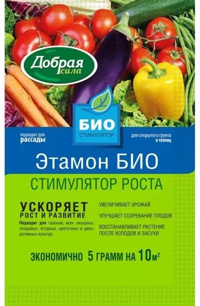 Повышает урожай. Стимулирует более ранее плодоношение. Обеспечивает активный рост. Снимает стресса после пересадки. Предохраняет растения при перепадах температур.