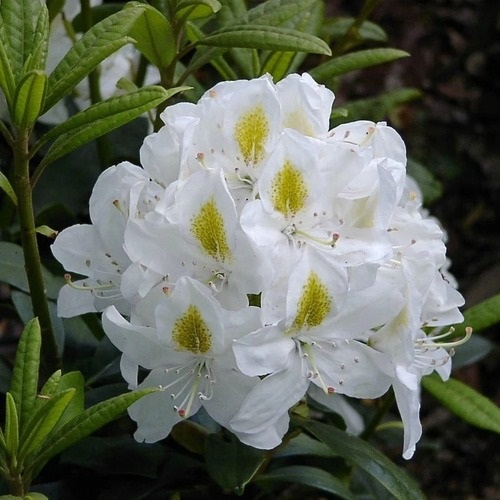 Рододендрон «Мадам Массан» —вечнозеленый кустарник с крупными и яркими цветами. Может достигать высоты до 2–3 метра. Листья у него тёмно-зелёные, блестящие, продолговатой формы.