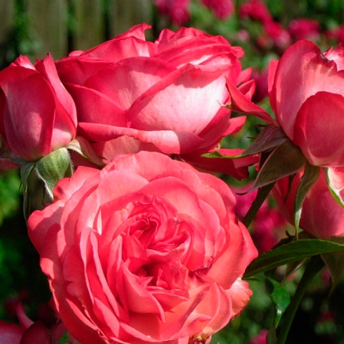 Представив Antike 89, Кордес подарил нам одну из лучших современных плетистых роз. У этого сорта крупные 13 см, махровые цветки потрясающего цвета, которые прекрасно выдерживают как жару, так и дождь. Роза обильно цветет все лето. Цветки белые или очень бледно розовые, с ярко-красными краями, но поскольку лепестков очень много, общий эффект скорее красный, чем белый. Цветки чашевидные, с закрученной серединкой, так что форма ближе к старинным розам, чем к современным. Цветки появляются по одному либо кистями до 5 шт., и превосходно стоят в срезке. Листва обильная, крупная. Не болеет. Побеги жесткие, так что сорт можно выращивать как шраб. Куст нарастает медленно, достигает 2,5-3 м в высоту.