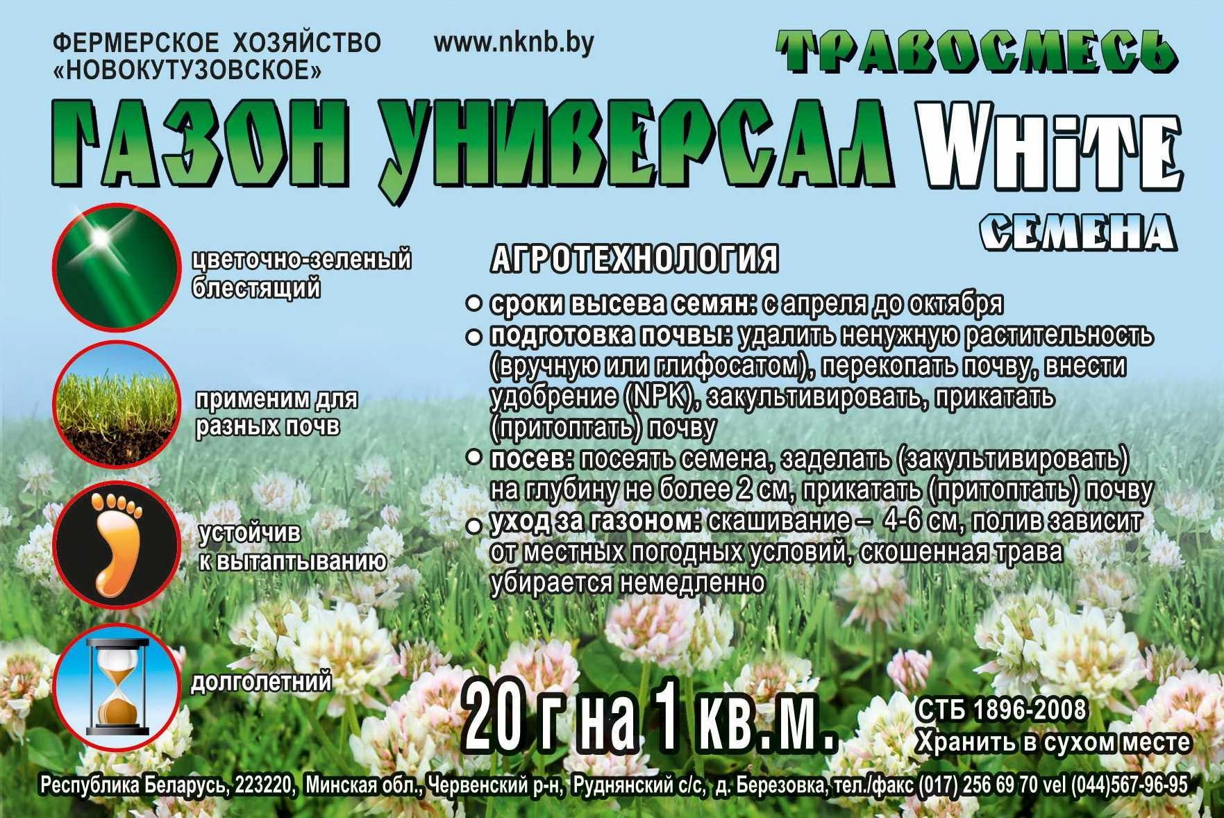 Состав: Овсяница луговая 30%; райграс пастбищный 30%; овсяница красная 15%; райграс однолетний 15%; Клевер белый 10%
