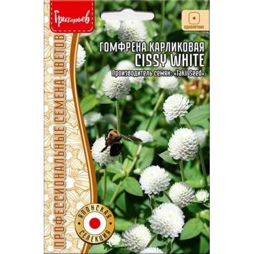 Подходит для декоративного использования в свежем и засушенном виде. Это однолетнее, карликовое, ветвящееся растение высотой 15. Листья яйцевидные, длиной 5-7 см, жёстко опушенные. Шаровидные соцветия диаметром до 3,5 см состоят из мелких неразличимых цветков. Период декоративности - с июля и до первых заморозков, поэтому в южных регионах гомфрена может радовать садоводов до конца ноября - декабря. Длительное цветение, а также неприхотливость выращивания делает эту культуру популярной и для ландшафтного озеленения. Многочисленные яркие шаровидные соцветия вносят оживление в различные уголки сада.
