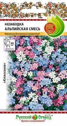Смесь колеров. Двулетнее растение высотой 25 см. Для многих этот голубой цветок - неотъемлемая примета весны. Выращивают также белый и розовый сорта. Незаменима для весеннего оформления цветников, бордюров, балконов. Семена высевают в июне. На постоянное место растения высаживают в августе - начале сентября. Наибольшей декоративности достигает на влажных плодородных почвах в полутенистых местах. Зимует без укрытия.